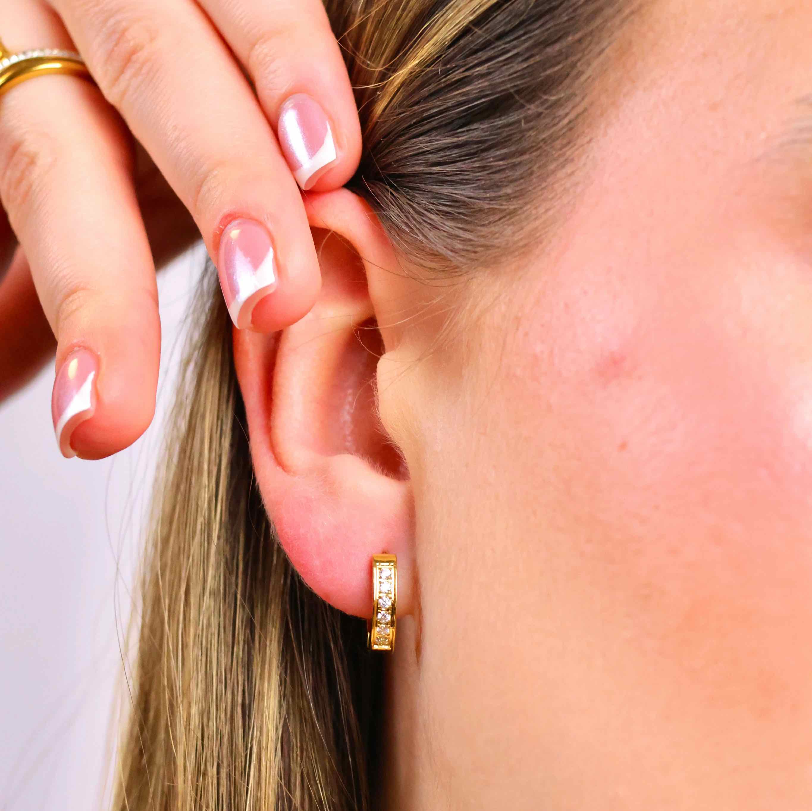 Kleine Daily Diamond Hoop Ohrringe aus 316L Edelstahl mit 18k Gold-Legierung und hochwertigen Zirconia Diamanten